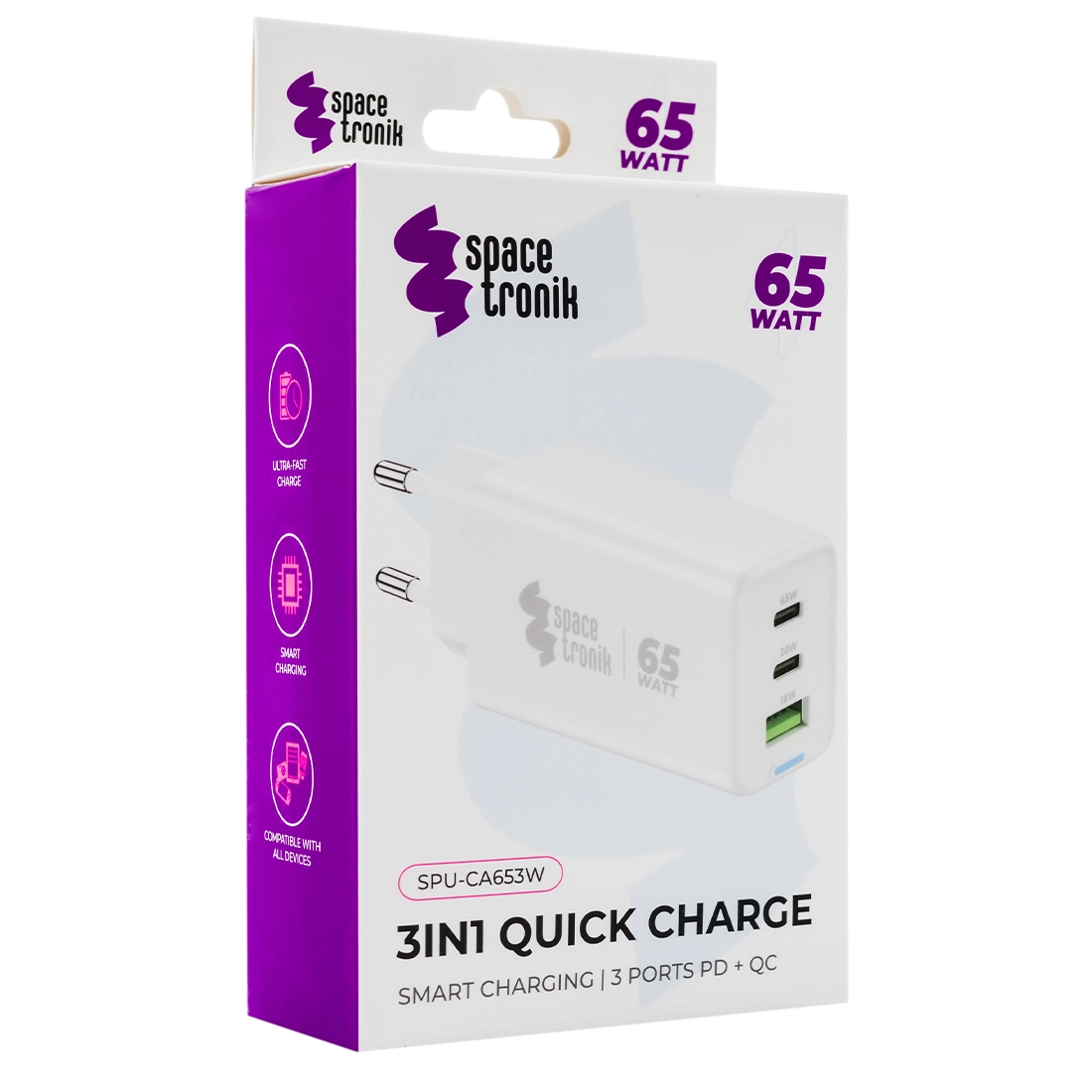 Spacetronik Ladegerät SPU-CA653W 3in1 65W PD USB-C USB Quick 5A Weiß
