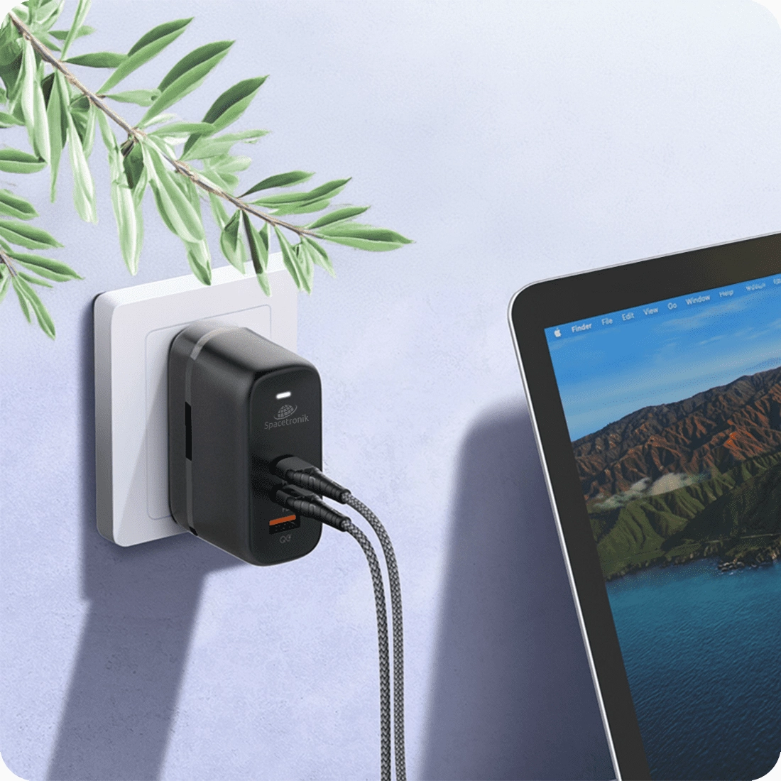 Viele herkömmliche Ladegeräte verwenden siliziumbasierte Technologie. Dies ist seit Jahren der Industriestandard. Mit der technologischen Entwicklung werden uns jedoch neue, effizientere Wege zur Lösung alltäglicher Probleme geboten. So wird die gaN-Ladegeräte. Silizium, das in normalen Ladegeräten verwendet wird, ist hier durch Galliumnitrid ersetzt worden. Dies macht sie kompakter, leichter und effizienter und können bei höheren Temperaturen betrieben werden. Genau diese Technologie wird im Spacetronik SR101 Ladegerät verwendet. Es wandelt Strom mit weniger Wärmeverlusten um. Dies führt zu einem geringeren Energieverbrauch und damit zu niedrigeren Stromrechnungen.