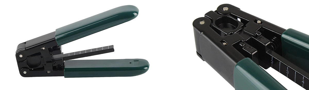 Dieses unentbehrliche Werkzeug für professionelle Glasfaserinstallationen ist mit einem Maßband ausgestattet, mit dem Sie die korrekte Länge der zu entfernenden Isolierung messen können.