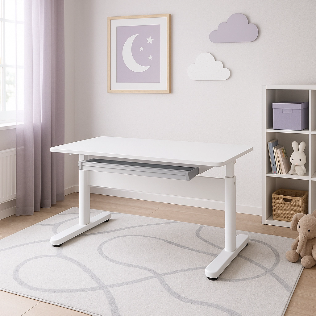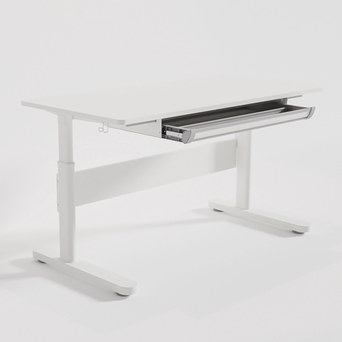 • Regulowane biurko dziecięce, które rośnie razem z Twoim dzieckiem. Dostosuj odpowiednią wysokość blatu do wzrostu Twojej pociechy w zakresie od 54 cm do 76 cm. Blat 120 x 60 cm. Kolor biały, klon. Hak na plecak. Odchylany blat. Dwie szuflady.