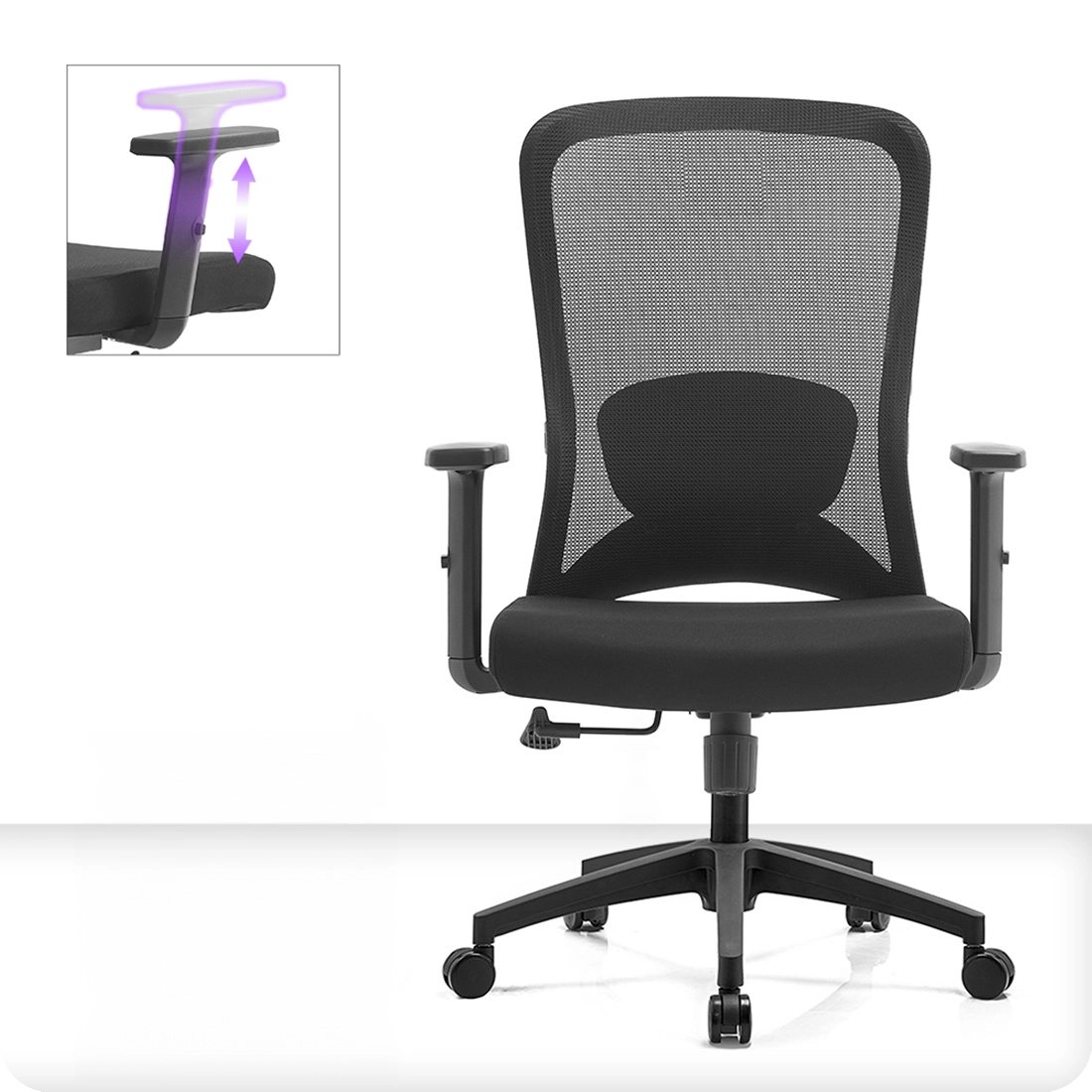 Was ebenfalls für die Qualität eines Bürostuhls spricht, ist die Verstellbarkeit der Armlehnen. Beim Bürostuhl Spacetronik ABEL-20 sind sie nach oben und unten verstellbar (1D). Gut eingestellte Armlehnen in der richtigen Höhe helfen Ihnen, Schulter- und Armschmerzen zu vermeiden. Letztendlich können sie auch zur Beseitigung von Rückenschmerzen durch reduzierte Muskelspannung beitragen. Wenn Sie Ihren Komfort gewährleisten wollen, sollten Sie sich daher für einen Stuhl entscheiden, der sich gut verstellen lässt.