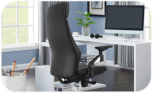 Die hohe Qualität der Komponenten, aus denen der Schreibtischsessel gefertigt ist, führt zu einer repräsentativen Optik. Der Sessel ist aus PU-Leder gefertigt und wirkt dadurch wesentlich eleganter. Die Sitzfläche ist mit PU-Leder gepolstert und mit hochdichtem Schaumstoff unterlegt.
