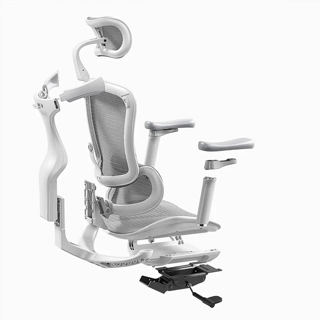 Darüber hinaus sind die Armlehnen mit der Rückenlehne synchronisiert. Das heißt, wenn Sie die Position der gesamten Rückenlehne des Stuhls verändern, neigen sich die Armlehnen mit.