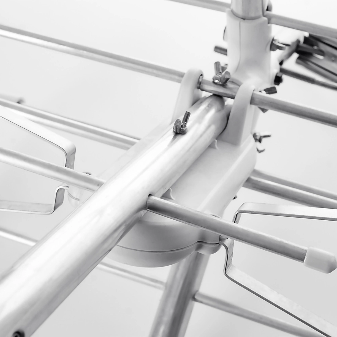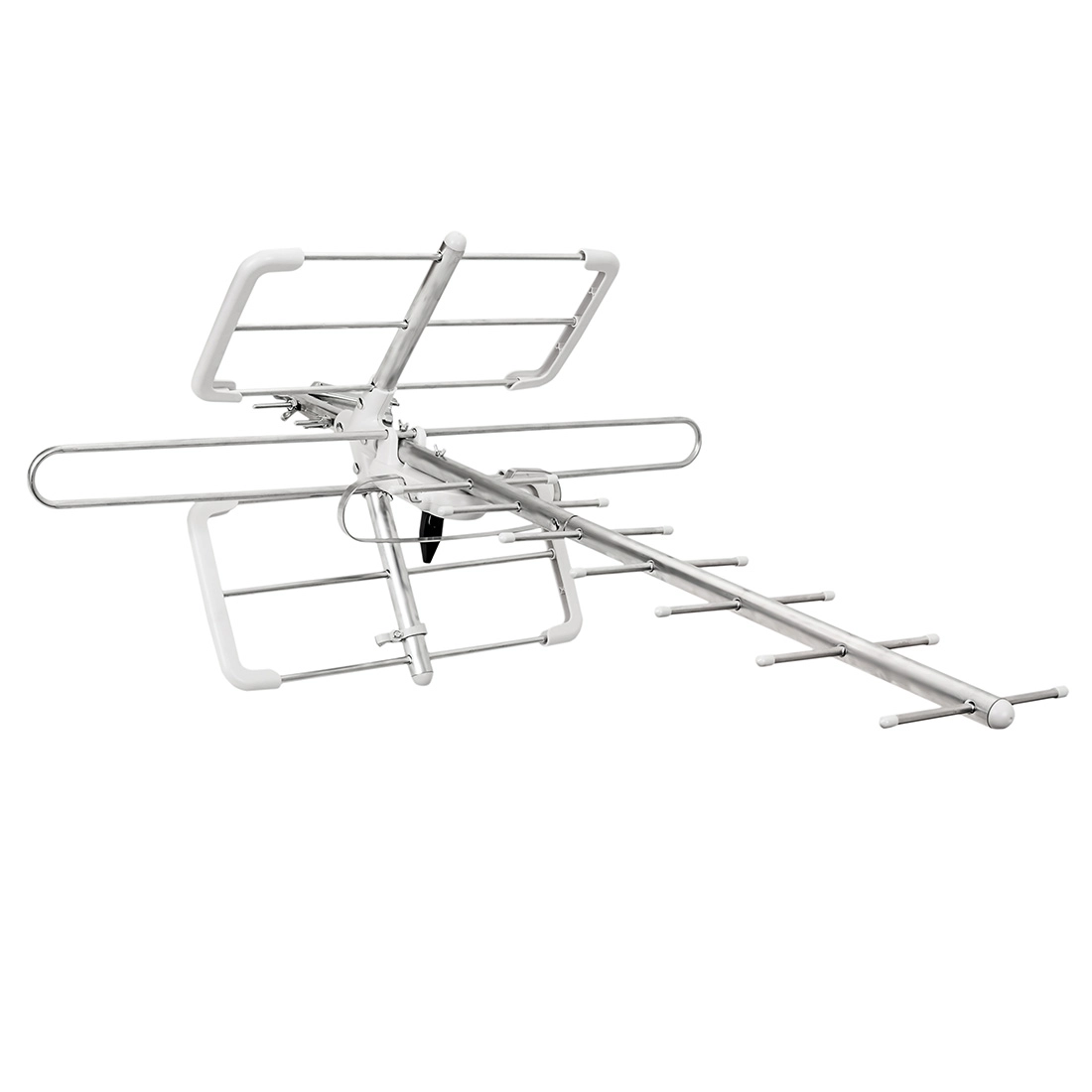 -Material: Hochwertige, wetterbeständige und korrosionsbeständige Elemente -Empfangsbereich: VHF+UHF (Combo) -Kanäle: 5-12 + 21-59 -Frequenz [MHz]: 174-230 + 470-698 -Ausgangsimpedanz [Ohm]: 75 -Polarisation: horizontal -Anschluss: Typ F -LTE-Filter: Ja, integriert -Maximaler Montagedurchmesser: 60mm -Abmessungen [mm]: 975x740x430 -Farbe: weiß -Empfang: UHF, VHF; Digitales Radio DAB+ -Anzahl der Polarisationen: 1 - horizontal oder vertikal -Ungefähre Reichweite (Aufteilung nach Gewinn dBi): 70km -LTE-Filter: ja -Antennentyp: passiv