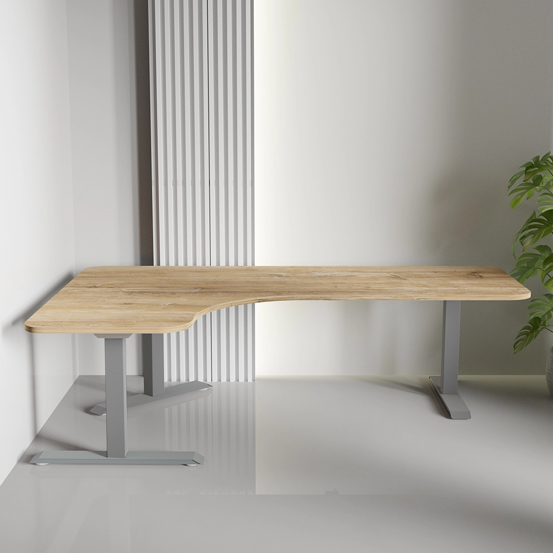 Eine robuste Universal-Tischplatte aus hochwertiger , beidseitig beschichteter 18 mm dicker Platte. Sie hat abgerundete Ecken und ist mit einer ABS-Kante geschützt. Kombiniert mit einem elektrischen Tischgestell ist sie ein ergonomisches und modernes Arbeitsmittel, ob zu Hause oder im Büro. L-förmige Platte, geeignet für Ecktische.