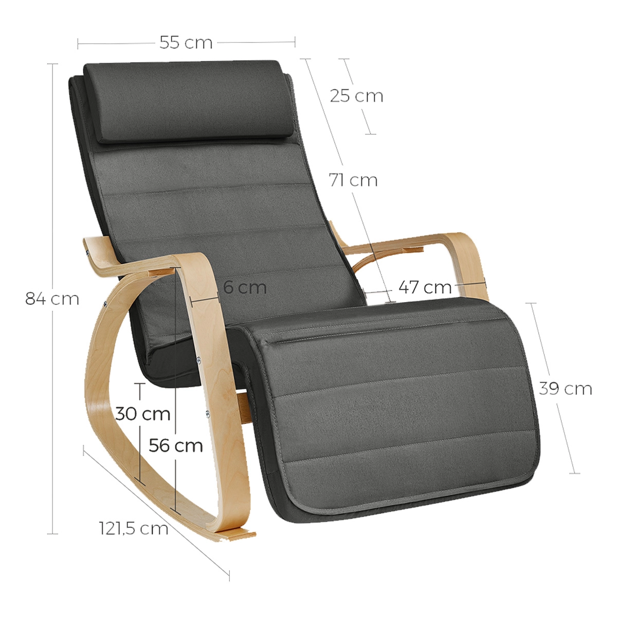 - Verstellbarer Winkel der Rückenlehne: 105-155°,