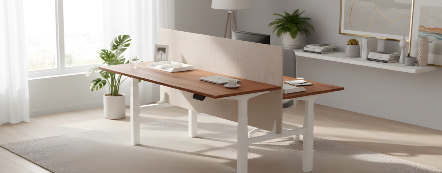 Wenn Sie in einem Büro arbeiten, verbringen Sie mindestens 8 Stunden pro Tag im Büro. Um negative Auswirkungen der Arbeit auf die Gesundheit zu vermeiden, sollte der Schreibtisch daher ergonomischen Anforderungen genügen. Eine davon ist die Anpassung des Arbeitsplatzes an die Körpergröße jedes einzelnen Mitarbeiters. Bei Schichtarbeit ist es jedoch schwierig, einen herkömmlichen Schreibtisch an die jeweilige Person anzupassen. Das liegt vor allem daran, dass in der Regel mehrere Personen an einem Schreibtisch arbeiten. Die Lösung für dieses Problem bietet der elektrische Doppel-Schreibtischständer Spacetronik 440W! Er ist mit vier Motoren und zwei separaten Tischflächen ausgestattet. Jede Fläche wird also von zwei leistungsstarken Motoren angetrieben. So erhalten Sie 2 völlig individuelle Arbeitsplätze mit nur einem Tisch. Jeder kann sie an seine eigenen Bedürfnisse anpassen.