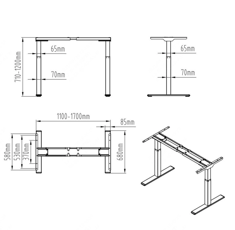 • Ein elektrisches Tischgestell, das es Ihnen ermöglicht, einen ergonomischen Schreibtisch zu schaffen und abwechselnd im Stehen und im Sitzen zu arbeiten. Höhenverstellbar von 71 cm bis 120 cm. Zweimotoriges System. Belastbarkeit bis zu 100 kg. Anti-Kollis