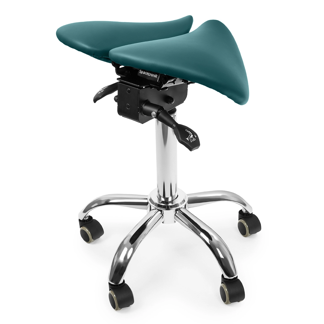 Der Sattelhocker ist zweifelsohne ein Weg zu gesünderem Arbeiten. für gesünderes Arbeiten.Spacetronik Schreibtischhocker Sella ermöglicht es, im Sitzen zu arbeiten oder zu lernen, oder halb stehend, d.h. aufgestützt, zu arbeiten oder zu lernen, wobei die Muskeln in den Beinen und und Bauchmuskeln. Die zweiteilige Sitzfläche des Hockers wirkt sich positiv auf die Gesundheit der Der zweiteilige Sitz des Hockers wirkt sich positiv auf die Gesundheit der Wirbelsäule aus, indem er sie in die richtige Position zwingt und verbessert die Durchblutung.