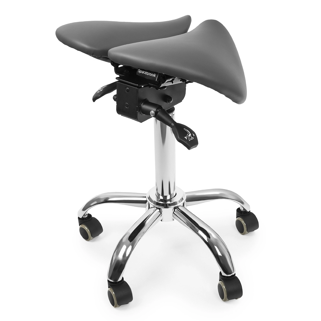 Langes Arbeiten am Schreibtisch kann ermüdend sein. Eine unbequeme Haltung kann Konzentrations- und Leistungsproblemen führen. Viele verschiedene Studien belegen dies, Viele verschiedene Studien haben gezeigt, dass ein Mitarbeiter, der sich bei der Arbeit wohlfühlt, viel effizienter arbeiten kann. Mitden verstellbaren Hockern von Spacetronik Sella ermöglichen Ihnen dank des geteilten Sattels eine gesunde, neutrale Körperhaltung. Eine gesunde, neutrale Körperhaltung. Erhöhen Sie das ergonomische Niveau Ihres Arbeitsplatzes Ergonomie Ihres Arbeitsplatzes. Eine Lösung, die für jeden geeignet ist. Perfekt für den Studenten, Schüler, Studenten, Büroangestellte oder medizinische Fachkräfte.