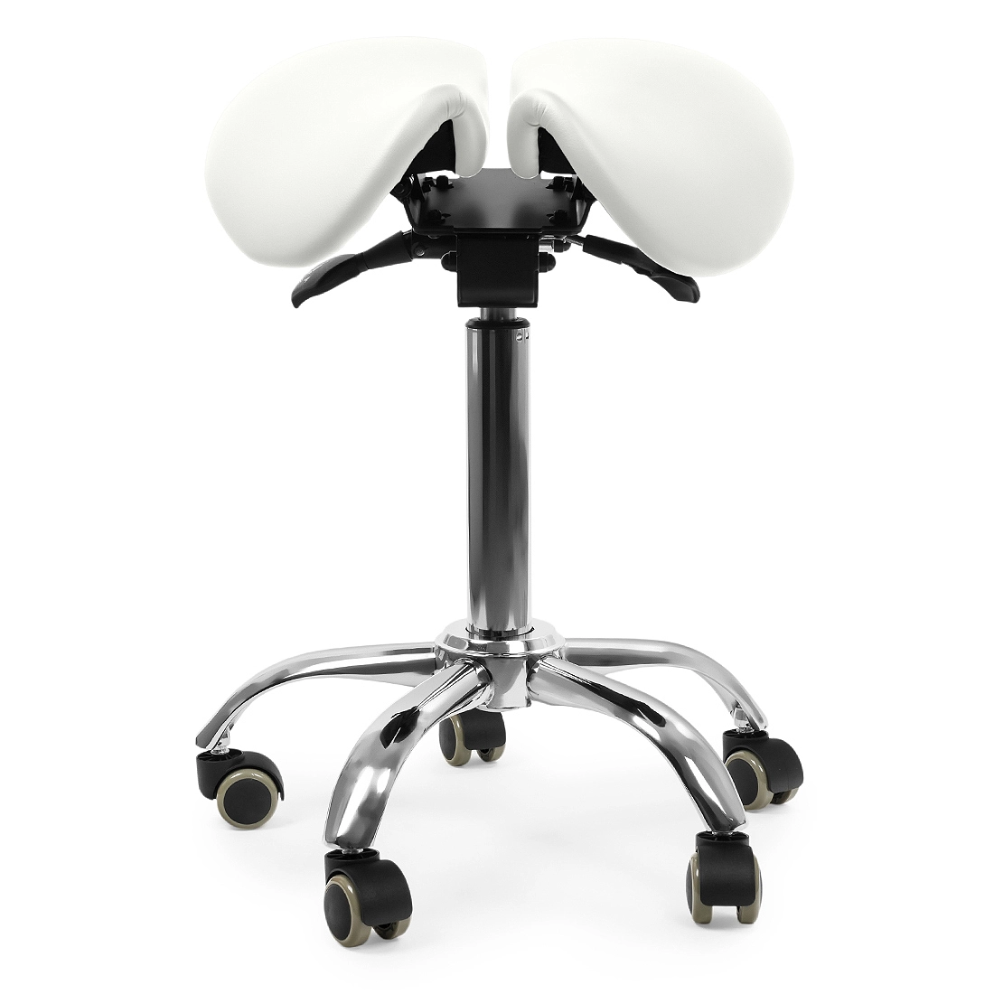 Beim Sitzen in einemzweiteiligen Stuhl Sattelstuhl wird Druck auf die für das Sitzen verantwortlichen Knochen ausgeübt, die Weichteile werden entlastet, so dass man länger in einer bequemen Position sitzen kann und die Durchblutung bleibt ungehindert.