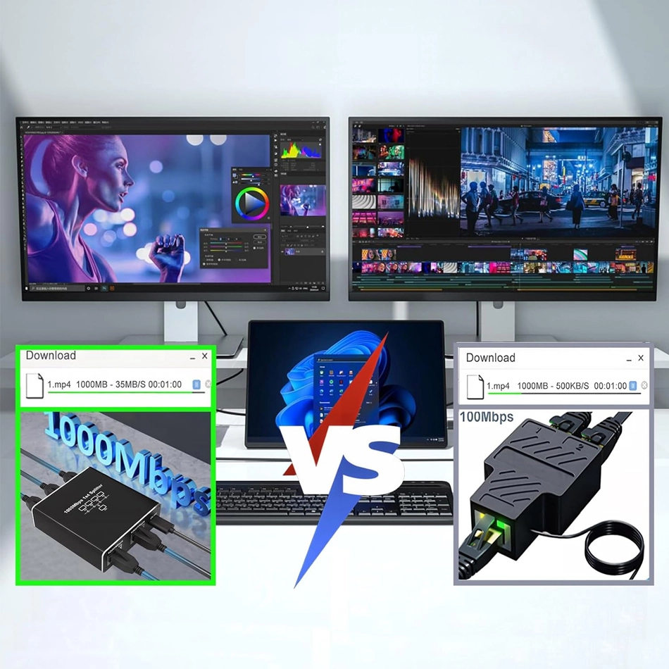 Der 1-zu-4-Splitter bietet eine verlustfreie Datenübertragung mit Geschwindigkeiten von bis zu 1.000 Mbit/s. Das bedeutet, dass Sie bis zu vier Geräte anschließen können, ohne sich Gedanken über einen Abfall der Verbindungsqualität zu machen. Egal, ob Sie Computer, Drucker oder Router verwenden, jeder Anschluss bietet eine stabile und zuverlässige Verbindung. Und mit einer Übertragungsdistanz von bis zu 100 Metern garantiert der Splitter überall einen reibungslosen Betrieb, unabhängig von der Größe des Raums.