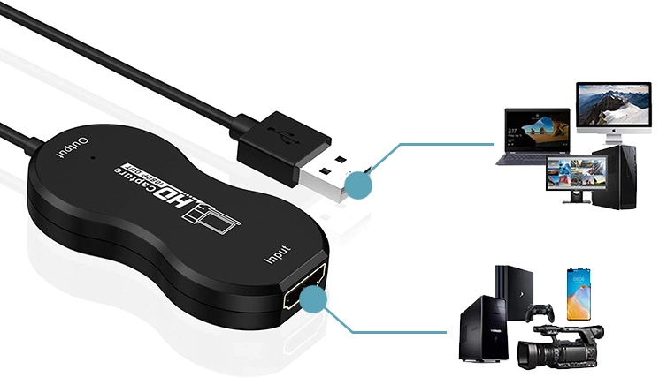 Dies ist ein großartiges Tool für Benutzer von Decodern mit Bezahlplattform, die mit einer Festplatte ausgestattet sind. Mit dem Rekorder können Aufnahmen von der Festplatte eines solchen Decoders in unverschlüsselter Form erfolgen (reines MPEG4, .flv-Format). Das aufgezeichnete Material wird auf der PC-Festplatte im Standardordner Video gespeichert. Die Aufnahme wird in OBS Studio gestartet und beendet. Interessanterweise kann das Gerät auch als HDMI-zu-USB-Konverter verwendet werden - perfekt für unterwegs, z. B. wenn Sie eine Set-Top-Box an Ihren Laptop anschließen möchten. Das Gerät verfügt über einen HDMI-Eingang, der 4k 30p unterstützt und die Möglichkeit bietet, in FullHD 30p-Auflösung aufzuzeichnen.