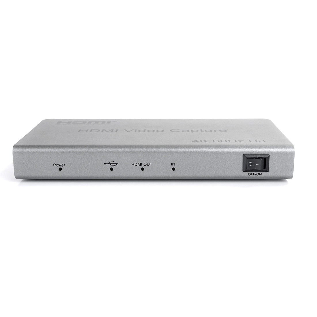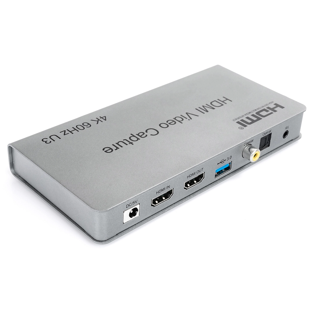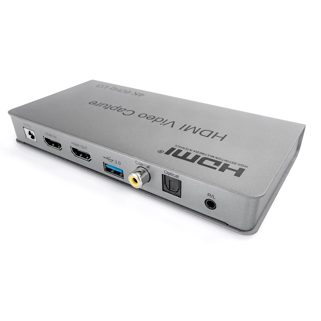 Mit diesem Gerät können Sie hochauflösende Videos von externen Quellen über ein HDMI-Kabel auf externe, an USB 3.0 angeschlossene Medien aufzeichnen. Ausgestattet mit einem HDMI-Ausgang können Sie das Bild jederzeit auf einem angeschlossenen Fernseher oder Monitor betrachten. Das Gerät fungiert auch als HDMI-Extraktor - so können Sie das Video über HDMI und das Audio über einen optischen, 3.5 R/L- oder Koaxial-Anschluss verteilen.