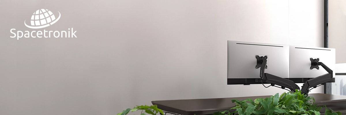 Die Spacetronik SPA-S120B Monitorhalterung ist aus einer Kombination aus Stahl, Aluminium und Kunststoff gefertigt. Dadurch bietet sie Ihnen eine maximale Belastbarkeit von bis zu 16 Kilogramm (pro Bildschirm). Darüber hinaus können Sie auch einen gebogenen Monitor daran aufhängen (bis zu 13 Kilogramm pro Bildschirm). Sie müssen sich also nicht einschränken! Sie können die meisten Monitore mit einer Diagonale von 17"-35" montieren. Die Halterung ist kompatibel mit dem VESA-Standard (75×75, 100×100). Der Spacetronik SPA-S120B 2-Monitor-Arm wurde mit einer Pulverbeschichtung versehen. Dies erhöht seine Korrosionsbeständigkeit. Und dank des Gasfedermechanismus können Sie Ihre Halterung leicht auf das richtige Bildschirmgewicht einstellen.