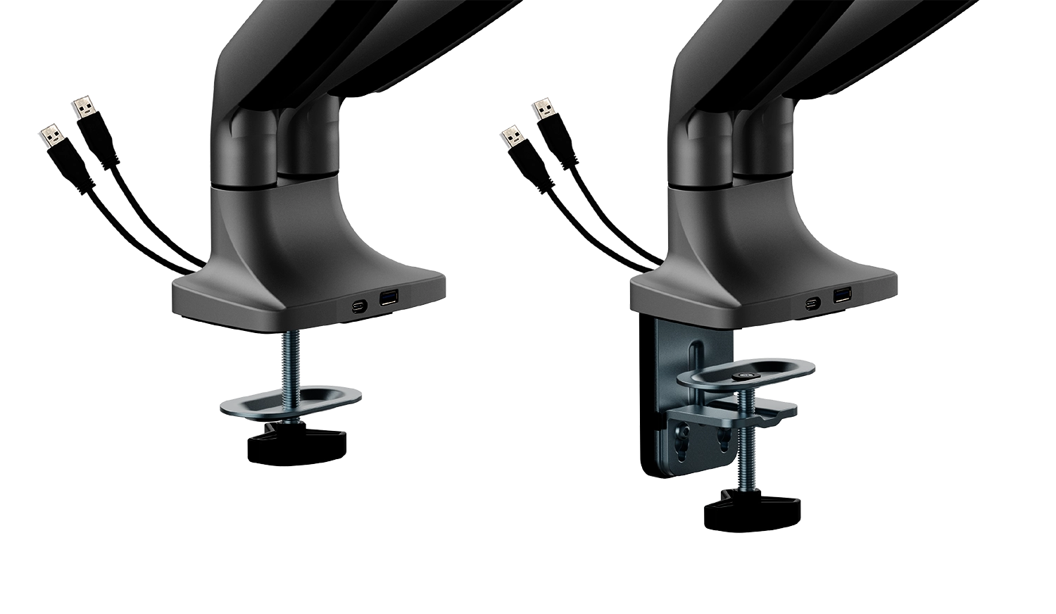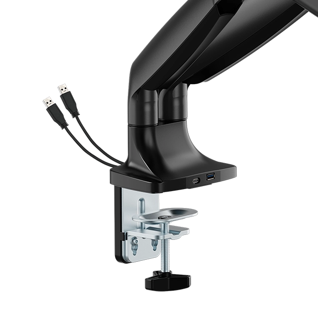 Der Sockel der Spacetronik SPA-S120B Monitorhalterung ist mit zwei USB-Eingängen (USB-A, USB-C) ausgestattet. Das bedeutet, dass Sie zum Beispiel Ihr Telefon einfach daran anschließen können. So können Sie z.B. Ihr Smartphone aufladen, ohne vom Computer aufstehen zu müssen. Mit der SPA-S120B-Halterung haben Sie alles, was Sie für Ihre Arbeit benötigen, immer griffbereit.