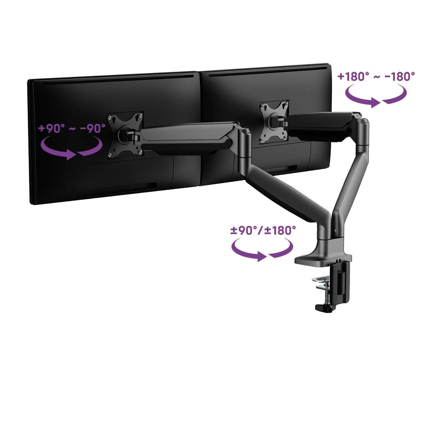 Die Spacetronik SPA-S120B Monitorhalterung ist so konstruiert, dass Sie die volle Kontrolle über Ihre Bedürfnisse haben. Sie können die Position der Monitore auf der Halterung selbst einstellen. Sie haben die Möglichkeit, die Neigung (+90°~-90°), die Drehung (+90°~-90°) und die Rotation (+180°~-180°) zu verändern. Damit ist sichergestellt, dass Ihre Monitore immer genau in der von Ihnen gewünschten Position stehen. Wenn Sie also zum Beispiel von der Sonne geblendet werden, können Sie Ihren Monitor problemlos neu positionieren. Arbeiten Sie bequemer mit der Spacetronik SPA-S120B Monitorhalterung!