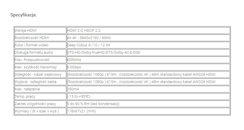 Ausgang - Kabelabstand | (1080p Auflösung ) 15m , (4K Auflösung ) 8m Standard AWG26 HDMI Kabel |