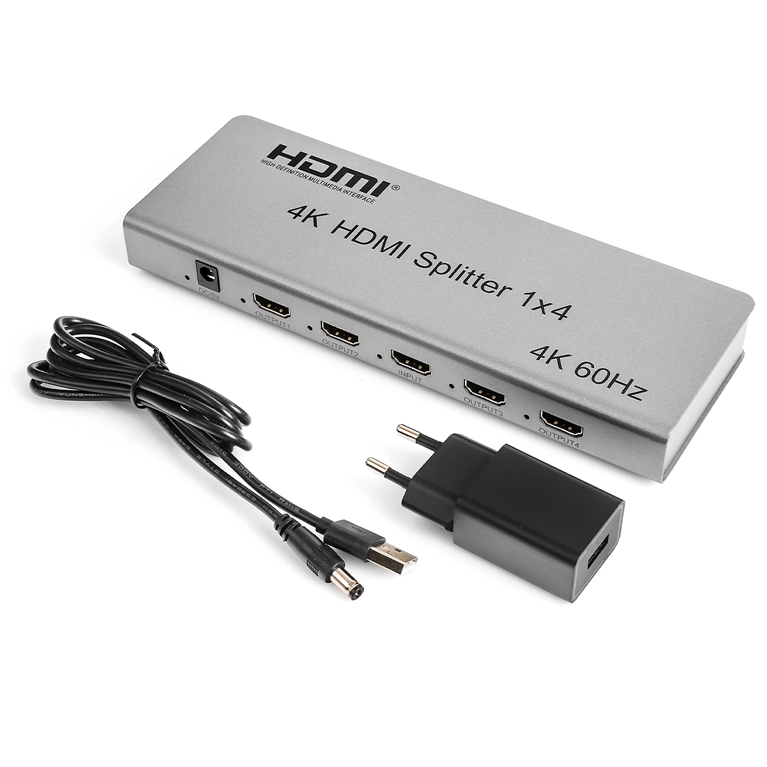 - 1x4-Splitter: ein HDMI-Eingang; vier HDMI-Ausgänge