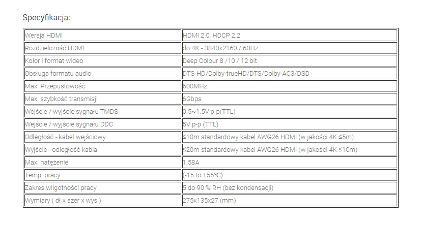 - Eingangsunterstützung für bis zu 10 Meter AWG26-Standard-HDMI-Kabel, Ausgangsunterstützung für bis zu 20 Meter AWG26-Kabel (bei ausgewählter 4k-Auflösung, Eingang bis zu 5 Meter, Ausgang bis zu 10 Meter)