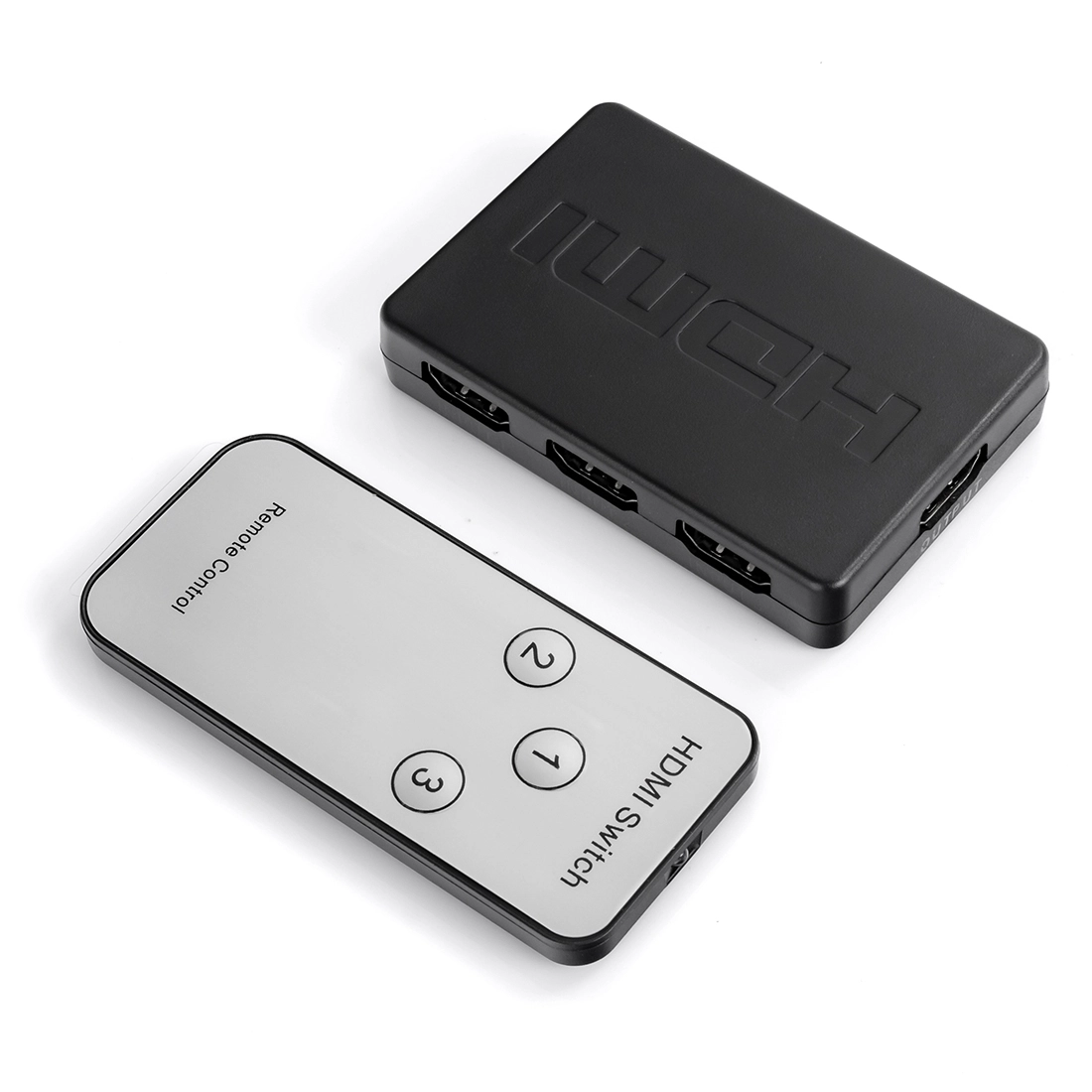 Mit dem 3x1-HDMI-Kombinierer können maximal drei HDMI-Quellen auf einen einzigen HDMI-Ausgang summiert werden, der über die Fernbedienung oder eine Taste am Gerät bedient wird. Der HDMI-Switcher unterstützt 1080p-Videoformate