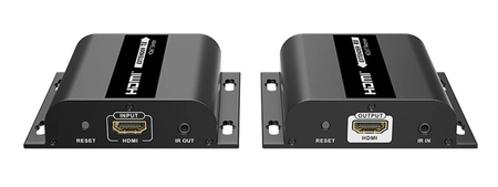 Der HDMI to LAN Konverter von Spacetronik ermöglicht es Ihnen, Video über Twisted-Pair Kat. 5 oder höher an den RX zu senden. er ermöglicht den Anschluss eines hochauflösenden (HD) Signals an einen Empfänger (TV, Monitor, etc.), der mit einem HDMI-Anschluss ausgestattet ist, über ein Twisted-Pair CAT. 5 oder höher. Das Set besteht aus einem Sender (TX) und einem Empfänger (RX). Ein zusätzlicher Vorteil des Geräts ist die Übertragung von Fernbedienungsfunktionen mit Hilfe der mitgelieferten Infrarotlampen (IR).