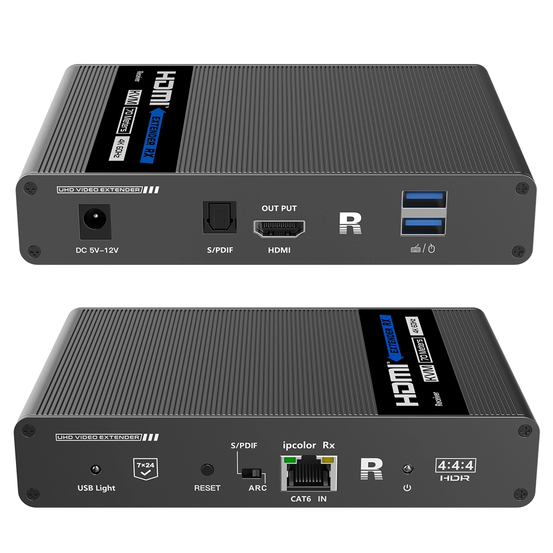 Der HDMI Extender ermöglicht die Übertragung und Verlängerung von unkomprimierten HDMI UHD 4K @ 60Hz Signalen über CAT6 / 6A / 7 Netzwerkkabel, die Übertragungsdistanz beträgt bis zu 70 Meter bei 4K Auflösung mit null Latenz. Das Kit umfasst eine Sendeeinheit (TX) und eine Empfangseinheit (RX), die als Paar arbeiten. Die Einheit verfügt über LKV-Funktionen zur Fernsteuerung des Geräts über Maus oder Tastatur.