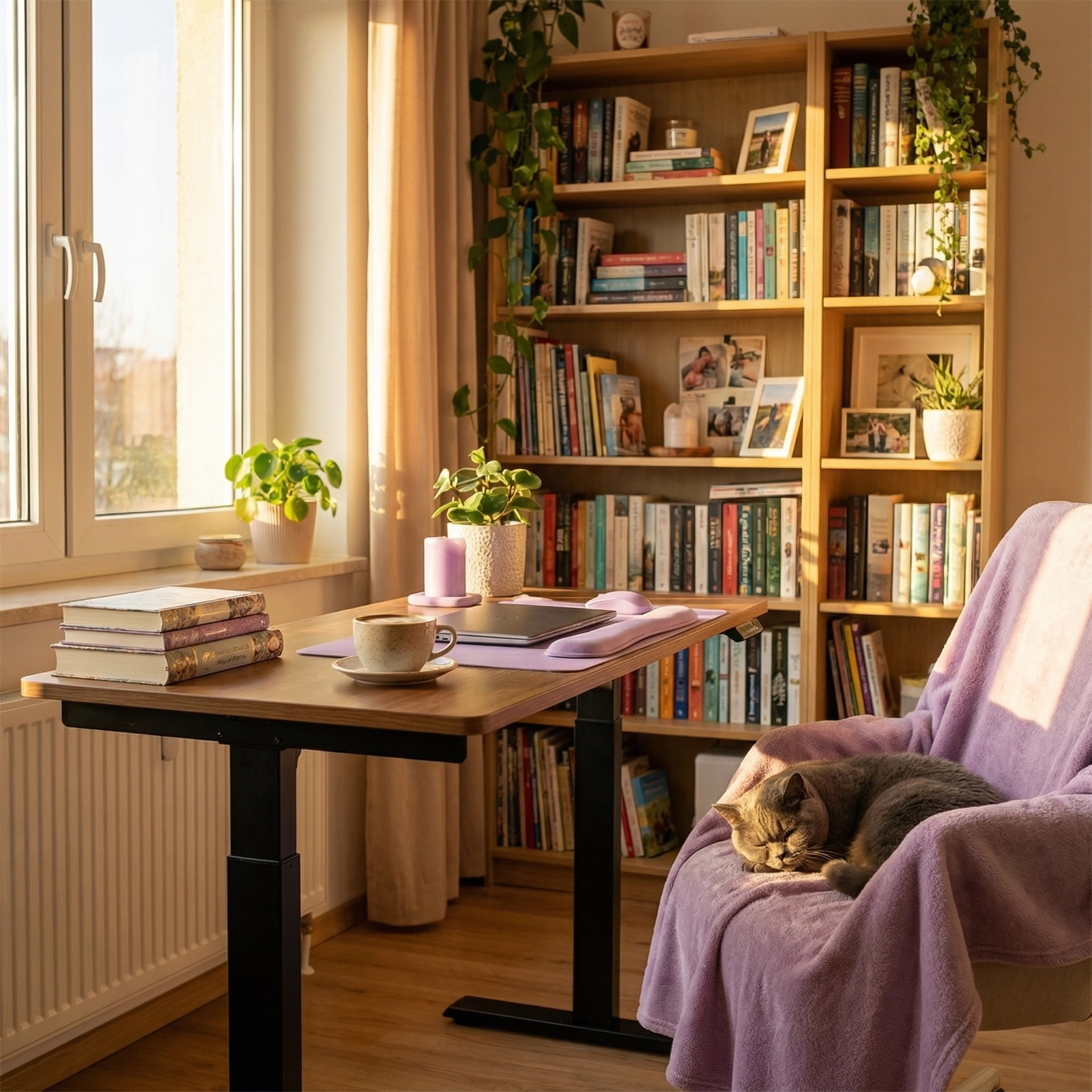 Das bringt viele Vorteile mit sich. Durch die Höhenverstellung können Sie Ihre Körperposition während der Fahrt verändern. Darüber hinaus kann jedes Haushaltsmitglied die Höhe an sich selbst anpassen. Das bedeutet, dass er auch für Ihr Kind ideal ist. Der Schreibtisch kann mitwachsen. Die Breitenverstellung wiederum sorgt dafür, dass das Gestell zum Beispiel bei einem Umzug keine Probleme macht. Sie können ihn problemlos in jeden Raum einbauen. Die verstellbare Breite bedeutet auch, dass Sie die Platte Ihres Schreibtisches im Laufe der Zeit problemlos austauschen können. Die Verwendung von verstellbaren Gestellen ist eine langfristige Lösung.