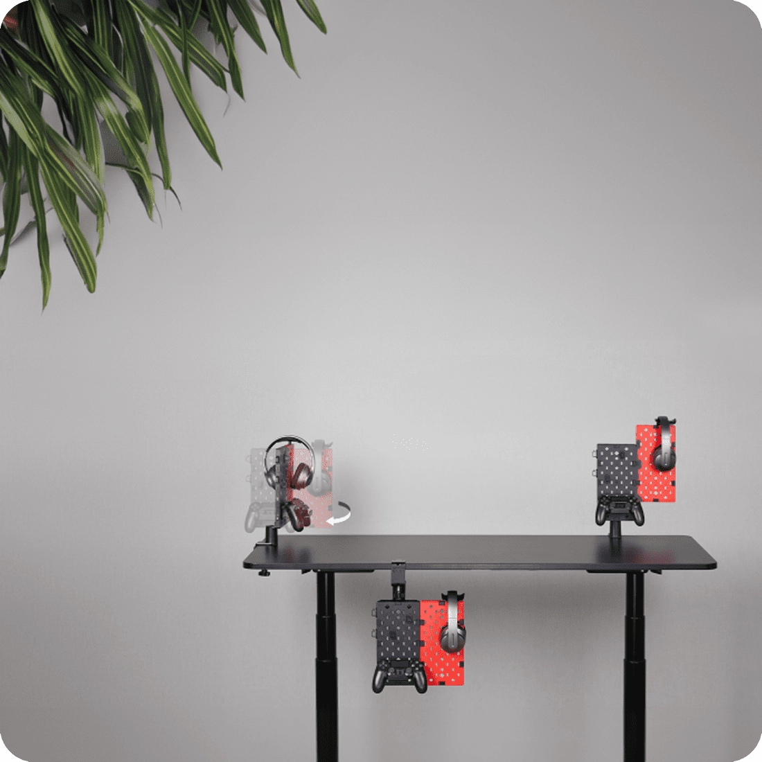 Sie können denSpacetronik SPB-150R Halter sowohl über als auch unter Ihrem Schreibtisch montieren. So können Sie den Kopfhörerhalter unabhängig von Ihren räumlichen Gegebenheiten nutzen. Dank der drehbaren Konstruktion können Sie den Ständer außerdem um 180 Grad drehen. So hast du dein Gaming-Zubehör immer griffbereit. Um dir jedoch noch mehr Gestaltungsmöglichkeiten zu bieten, ist der Kopfhörerhalter für den Schreibtisch modular aufgebaut.