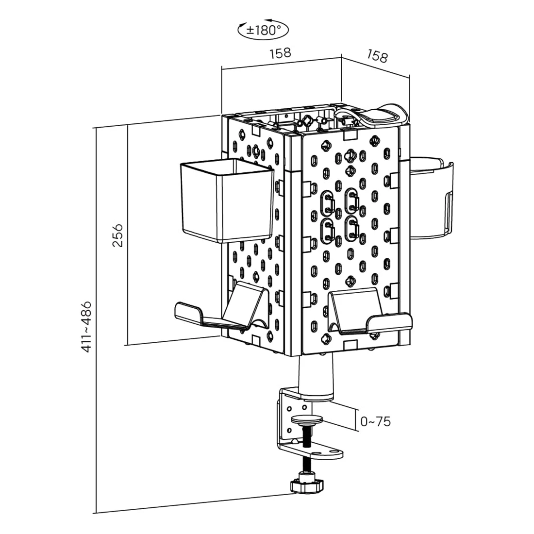 DerSpacetronik SPB-154R Halter ist ein unverzichtbarer Bestandteil eines jeden Gamer-Schreibtisches. Er kann sowohl über dem Schreibtisch als auch unter dem Schreibtisch montiert werden. Das modulare Design erlaubt es Ihnen, ihn an Ihren Platz anzupassen. Auf diese Weise haben Sie Ihr wichtigstes Zubehör immer griffbereit.