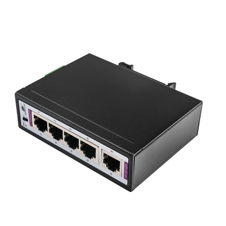 Der Spacetronik SP-SFI105P Industrial PoE Switch ist die ideale Lösung für anspruchsvolle industrielle Umgebungen. Ausgestattet mit 4 10/100M PoE Ports und 1 RJ45 Uplink Port, unterstützt er die IEEE 802.3af/at Standards und bietet bis zu 30W pro Port. Das robuste IP30-Design gewährleistet Zuverlässigkeit auch unter extremen Bedingungen (-40°C bis 75°C). Eine Reichweitenverlängerungsfunktion von bis zu 250m und ein Überspannungsschutz von 6KV gewährleisten einen sicheren und stabilen Betrieb. Das kompakte Design und die einfache Installation machen es ideal für die Stromversorgung von IP-Kameras, Access Points und anderen Netzwerkgeräten