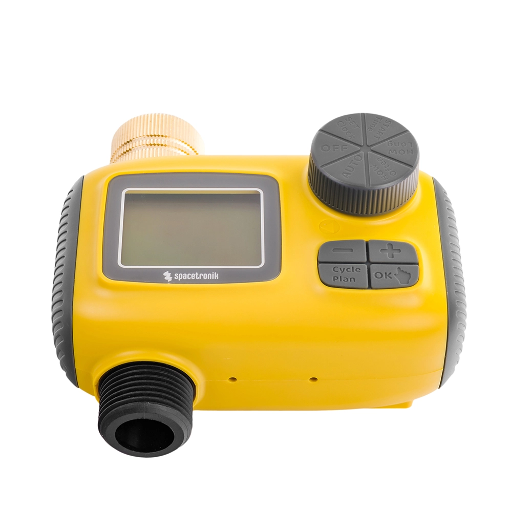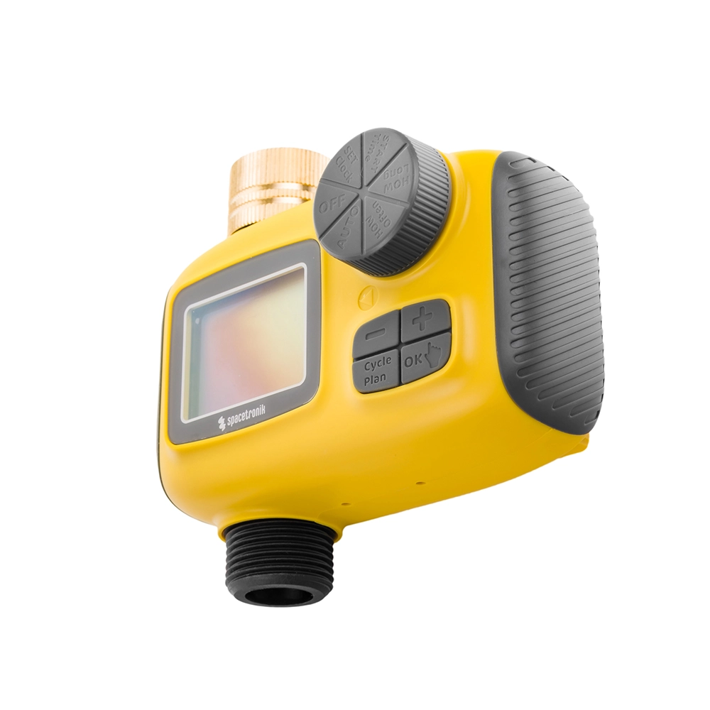 Spacetronik SPGC41 umożliwia pełną personalizację harmonogramu nawadniania. Możesz ustawić aż 3 niezależne programy, z precyzyjnie określonymi godzinami i długością podlewania – od kilku minut do niemal całej doby. Niezależnie od tego, czy potrzebujesz intensywnego podlewania trawnika, czy delikatnego nawadniania roślin w szklarni – ten zawór wodny zrobi to za Ciebie, dokładnie wtedy, kiedy trzeba.