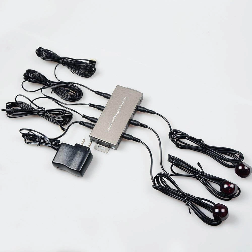Das Gerät dient zur Fernsteuerung eines Gerätes über ein IR-Signal und beeinträchtigt dessen Empfang nicht. An den Repeater können Geräte wie z.B. Stereoreceiver, Satelliten-TV-Receiver, CD-Player, DVD-Player, Blu-ray-Player oder andere Komponenten, die über IR gesteuert werden, angeschlossen werden. Das Gerät kann mit bis zu drei Empfängern verbunden werden und kann bis zu sechs Sender bedienen. Dank der neuesten Technologie können Sie das Gerät für bis zu 3 Räume verwenden. Übertragen Sie das IR-Signal dank des hochempfindlichen Sensors ohne Verzögerung.