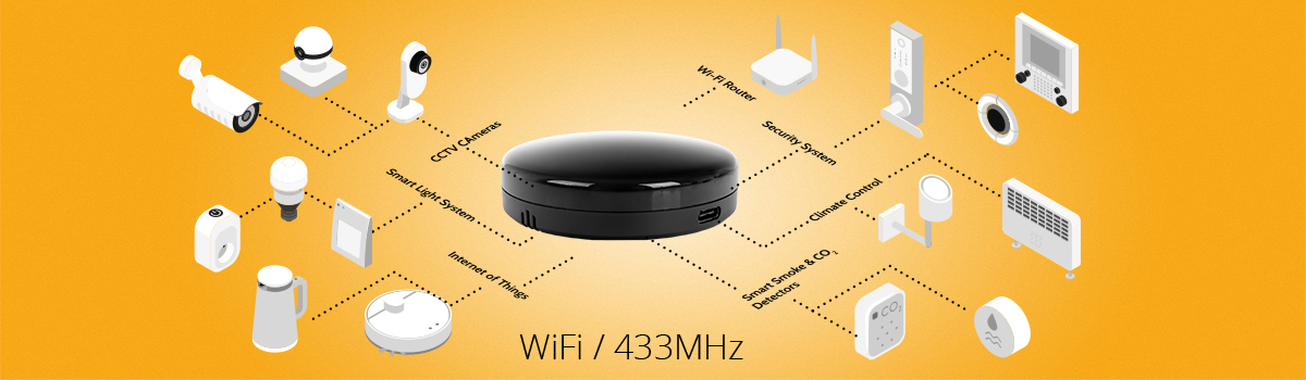 Sind Sie manchmal auf der Suche nach der Fernbedienung Ihres Fernsehers, Tuners oder Ihrer KlimaanlageSind Sie es leid, dass die Fernbedienungen zur Steuerung Ihrer Geräte im ganzen Haus verstreut sind? Der IR-Sender wird Ihnen helfen, sie unter Kontrolle zu bekommen! Kabellose WiFi-Fernbedienung für die Verwaltung von Geräten, die mit einer herkömmlichen IR-Fernbedienung gesteuert werden. Machen Sie sich das Leben leichter und ersetzen Sie alle Fernbedienungen in Ihrem Haus durch eine einzige Smartphone-Fernbedienung. Der IR-Sender kann alle IR- (Infrarot-) gesteuerten Geräte und solche, die im 433-MHz-Band arbeiten, über ein einziges Smartphone-Gerät mit der kostenlosen Tuya- oder Smart Life-App bedienen.