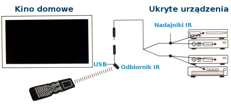 przekaźnik pilota IR, przekaźnik szafkowy IR, Spacetronik SP-IR04, zasięg IR do 25m, pilot IR do szafki, sterowanie urządzeniami w szafce, przekaźnik sygnału IR, IR pilot do dekodera, IR extender, pilot IR do telewizora