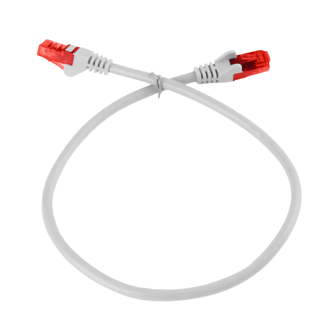 LAN-Netzwerkkabel mit beidseitigen RJ-45-Steckern. Patchkabel (auch Crossover-Kabel genannt) zum Anschluss der Teilnehmerdose an Netzwerkgeräte wie Router, Switches oder auch direkt an die Netzwerkkarte des Computers. Die Kabelkategorie (CAT6) definiert die Funktion im Frequenzbereich bis 250 MHz.