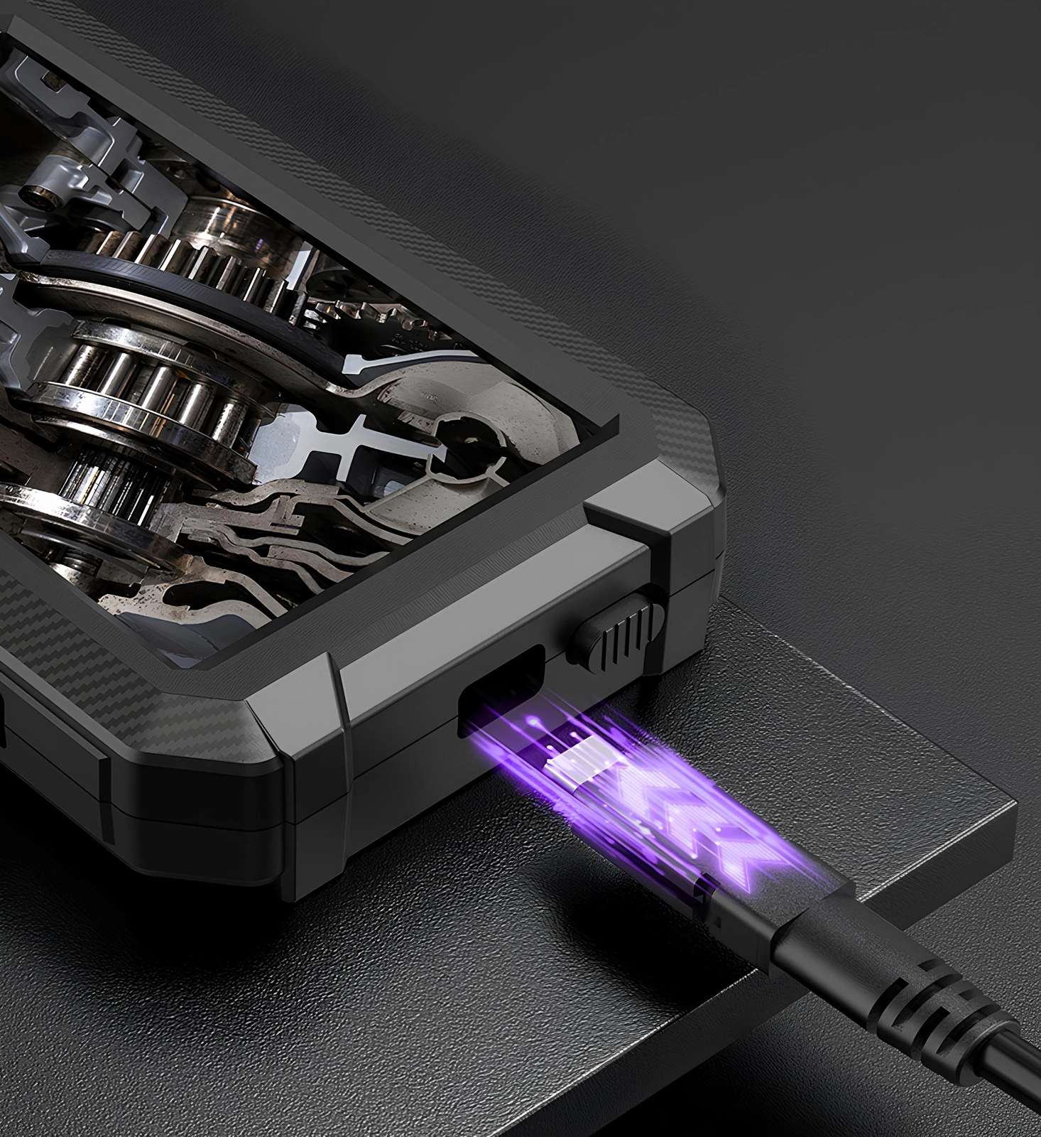 Der 2000-mAh-Akku sorgt dafür, dass das Gerät etwa 3 Stunden lang funktioniert. So müssen Sie sich keine Sorgen machen, dass der Akku plötzlich leer ist, während Sie arbeiten. Mit dem mitgelieferten USB-C-Kabel können Sie das Gerät in nur etwa 2,5 Stunden aufladen. Das Kabel bietet eine Datenübertragungsrate von 40 MB/s, sodass Sie alle Ihre Fotos und Aufnahmen schnell und einfach auf Ihren Computer übertragen können. Doch nicht nur der robuste Akku macht das SPU-E02-0100 Endoscope ideal für den Einsatz unter widrigen Bedingungen. Seine Wasserdichtigkeit nach IP67 garantiert Sicherheit bei Nässe, so dass Sie es problemlos zur Inspektion von Rohren oder Maschinen einsetzen können.