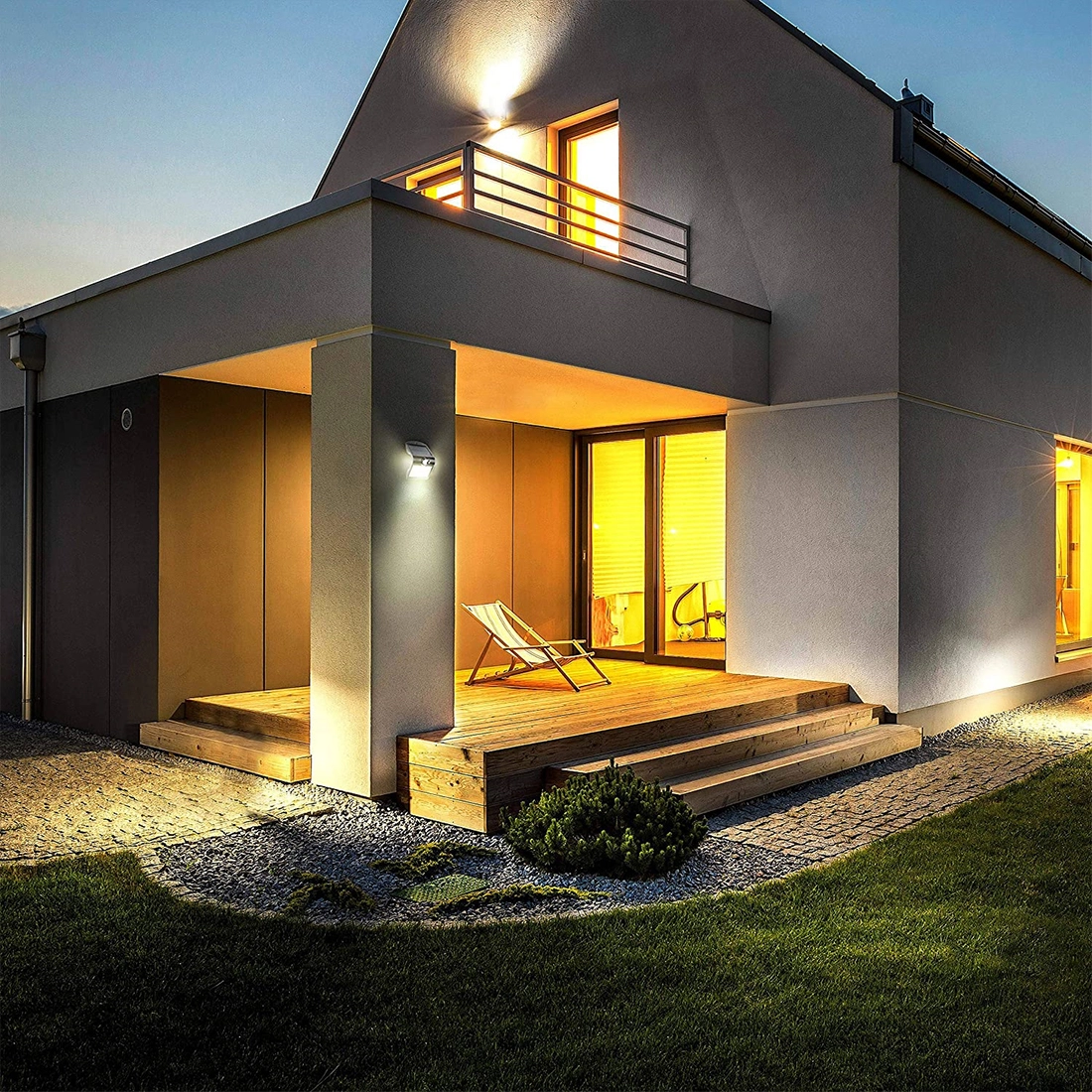 Die LED-Wandleuchte ist auch mit einem Dämmerungssensor ausgestattet. Er erkennt die Intensität des Lichts, so dass sie sich an sonnigen Tagen nicht einschaltet und Energie spart. Wenn die Dämmerung einsetzt, schaltet das Gerät automatisch einen sanften Lichtstrom ein und erhöht die Leistung, wenn eine Bewegung erkannt wird. Durch den Einsatz beider Systeme wird die Wandleuchte automatisiert. Dies führt dazu, dass Energie gespart und nur bei Bedarf verbraucht wird.
