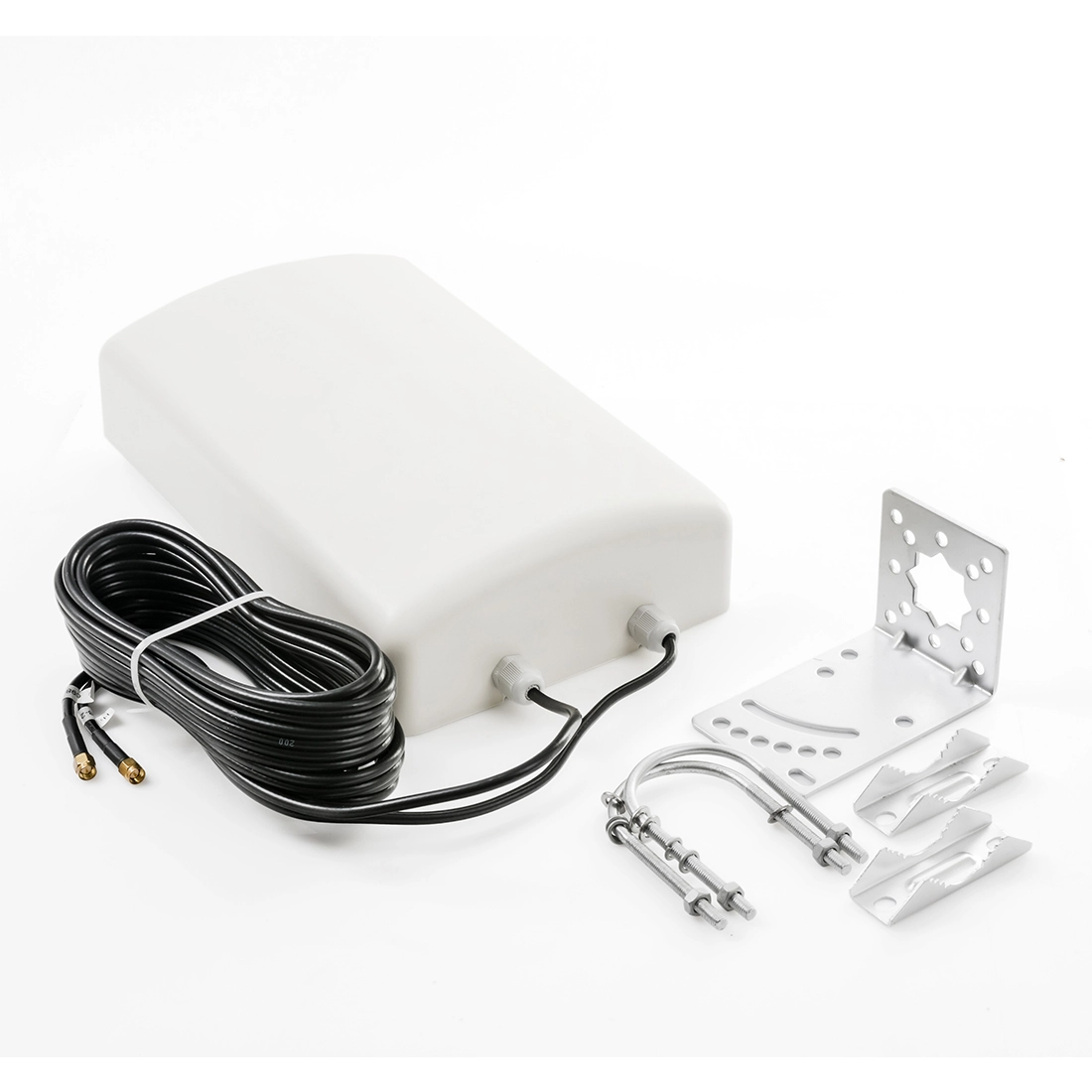 MIMO-Richtantenne, für die Außeninstallation konzipiert. Speziell für den Empfang und die Übertragung des Signals von einem Modem, LTE/5G-Router. Die Antenne hat einen Gewinn von 12 bis 14 dBi (je nach Band). Die 5G-Antenne ist mit zwei 5-Meter-Antennenanschlüssen ausgestattet, die mit SMA-Steckern abgeschlossen sind. Die Antenne unterstützt die MIMO-Technologie - MIMO (Multiple Input, Multiple Output) - eine Lösung zur Erhöhung des Durchsatzes eines drahtlosen Netzwerks, die eine Übertragung mit mehreren Antennen sowohl auf der Sende- als auch auf der Empfangsseite vorsieht.