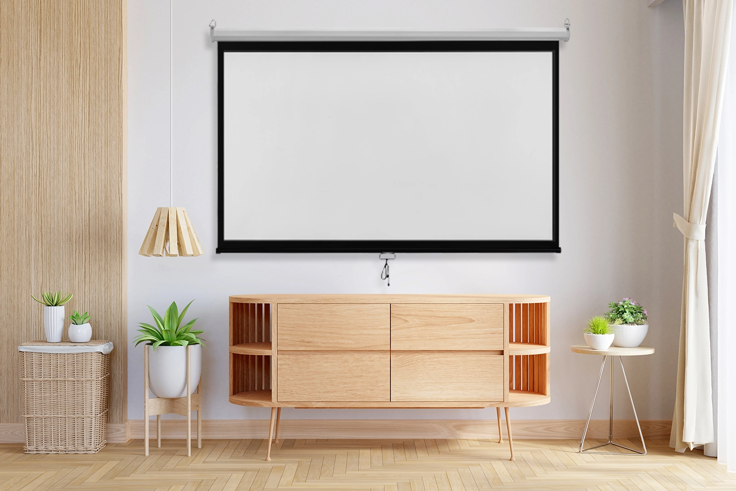 Unsere Projektionswand ist extrem einfach zu installieren. In nur wenigen Minuten können Sie eine Filmvorführung auf höchstem Niveau genießen. Alles, was Sie tun müssen, ist die Leinwand aufzuhängen und auszurollen.