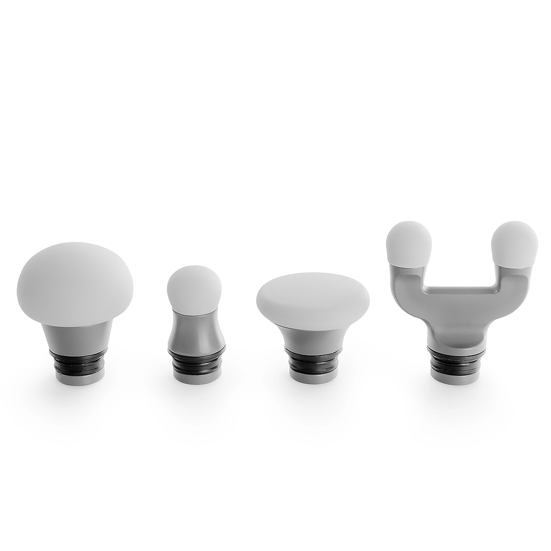4 Massageköpfe: rund, flach, Projektil und Gabel