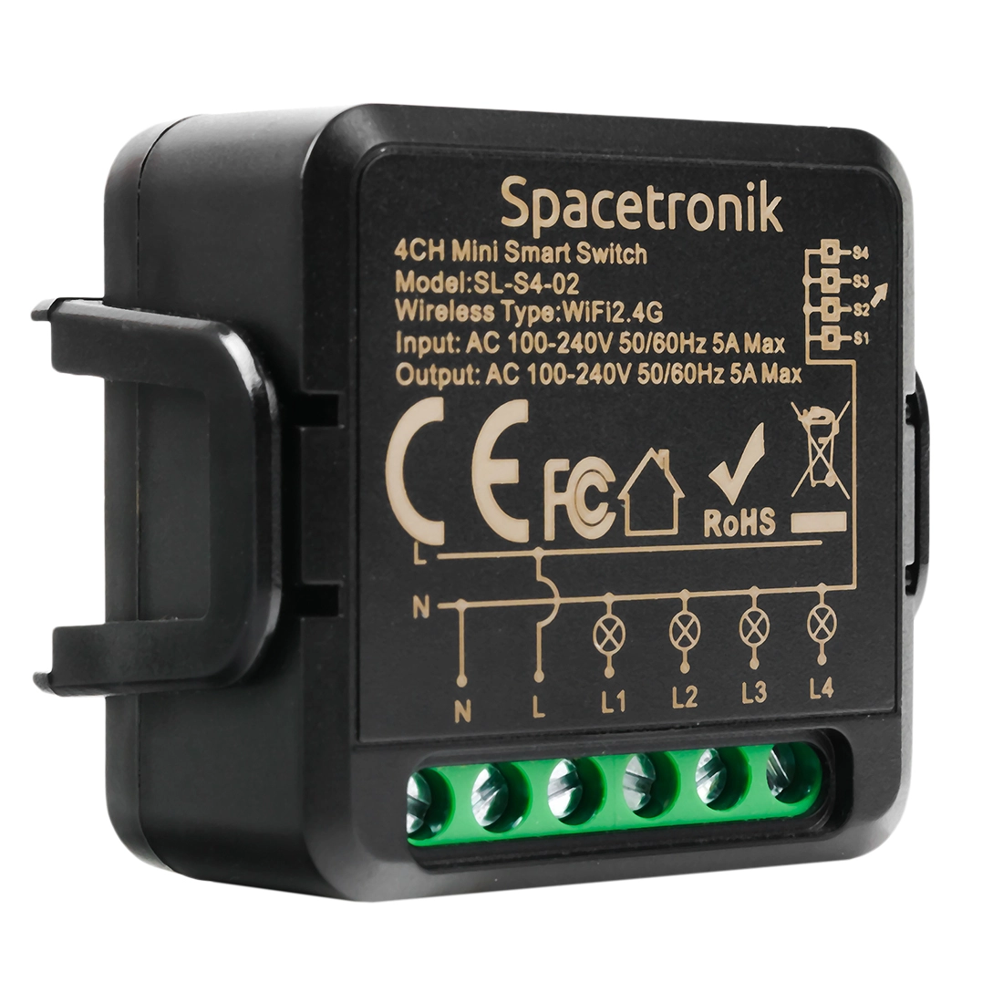 Mini-Schalter Spacetronik SL-S4-02 Wi-Fi Abzweigschalter Tuya Quadruple