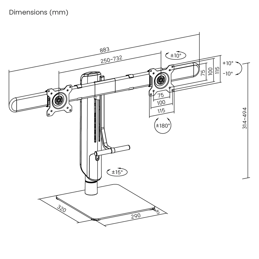 Dzięki szerokim możliwościom regulacji użytkownik może dowolnie dostosować ustawienie ekranów – w tym ich przechył w zakresie +10°~-10°, obrót o 180° oraz rotację do pracy w pionie lub poziomie. Regulacja kąta nachylenia i obrotu oraz regulacja wysokości pozwala uzyskać optymalne ustawienie widoku i zmniejszyć obciążenie karku i pleców.