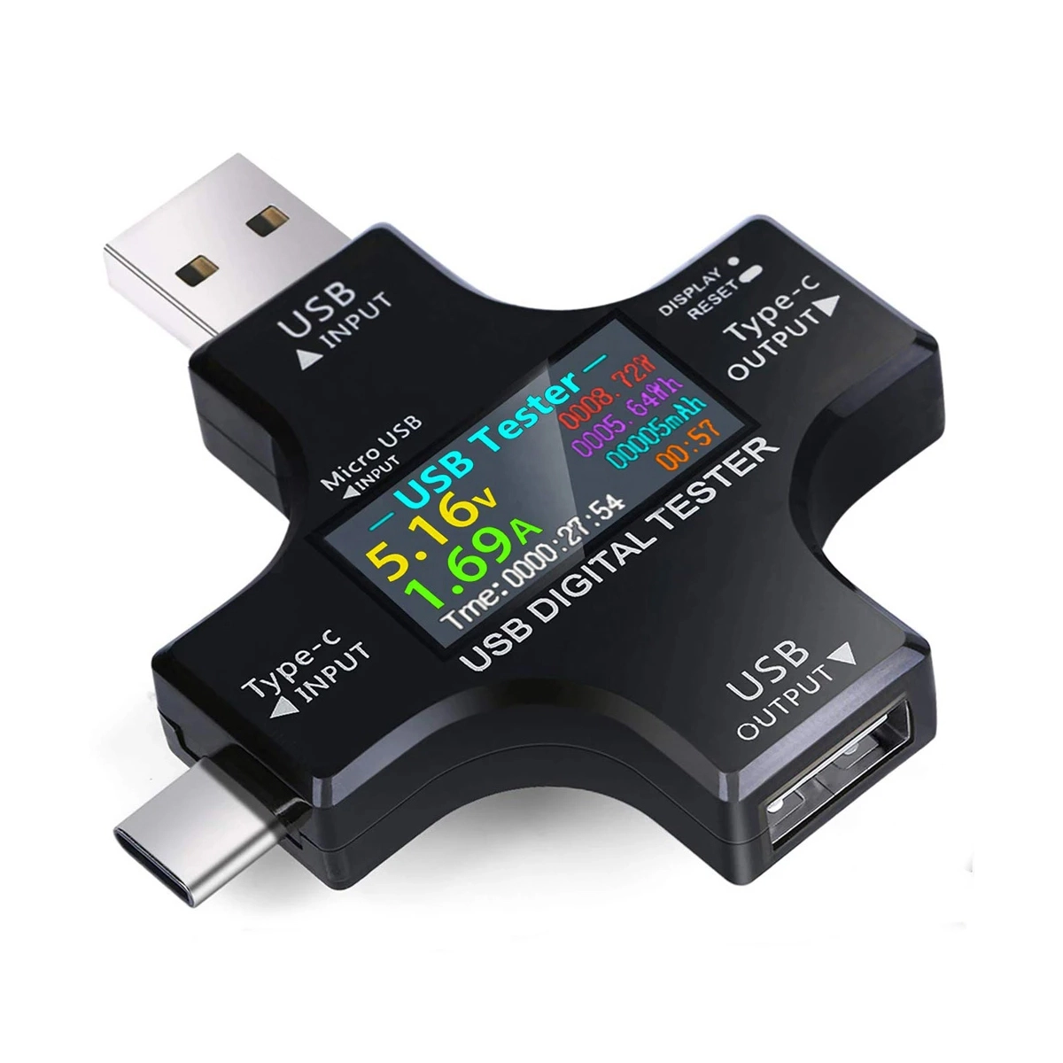Ein multifunktionales Prüfgerät, das die Prüfung von USB-, USB-C- und Micro-USB-Steckern und -Buchsen ermöglicht. Das Gerät ist mit einem digitalen LCD-Display ausgestattet, das die Ergebnisse in hoher Qualität anzeigt.