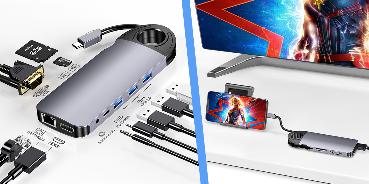 Der Multiport verfügt über 3 USB 3.0-Buchsen, dank derer die Übertragung viel schneller ist als bei Standardbuchsen. Die Steckdosen unterstützen alle auf dem Markt erhältlichen Geräte. Darüber hinaus können die Buchsen externe Geräte mit Strom versorgen (5V 1A)SD/TF-Kartenleser