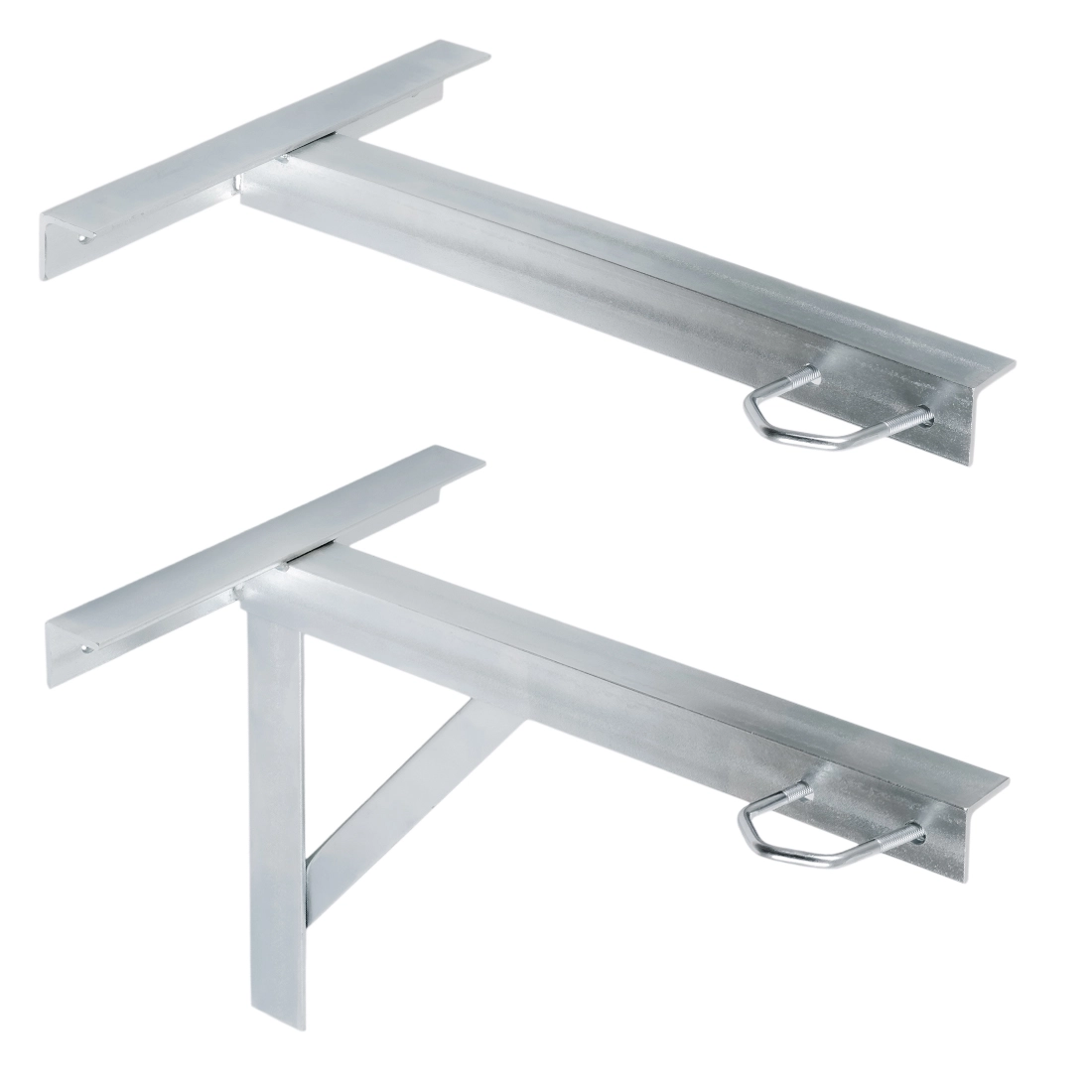 Diese Stahlhalterung ermöglicht die Befestigung eines Antennenmastes, z.B. an der Fassade eines Gebäudes oder an einem Schornstein. Durch die Verwendung von verzinktem Stahl und zusätzlicher Verstärkung wird die Beständigkeit gegen Korrosion und andere Beschädigungen gewährleistet. Die Halterung ermöglicht die Befestigung eines Antennenmastes mit einem maximalen Durchmesser von 50 mm. Er entfernt den Mast um 25 cm von der Wand.