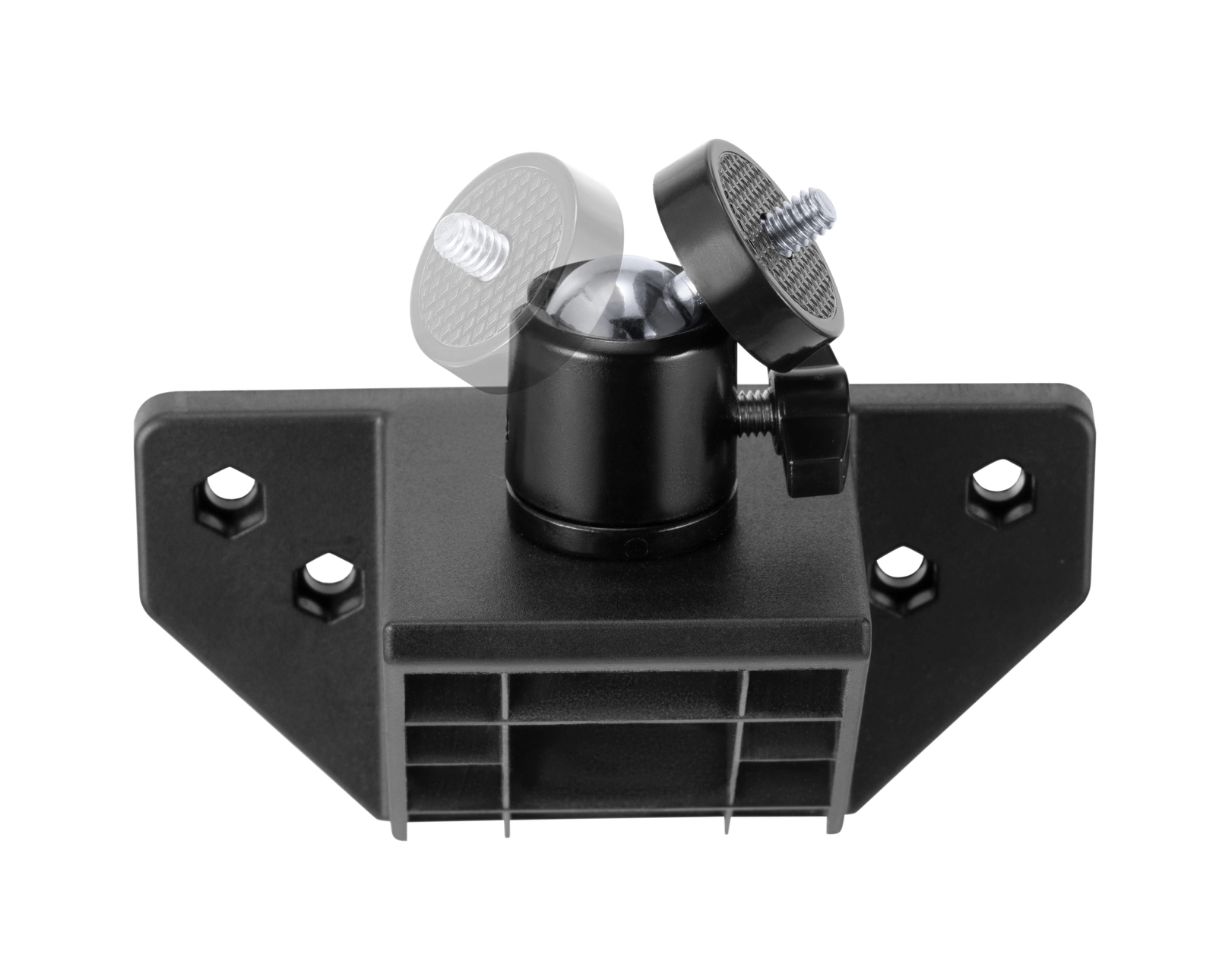 • Adapter zur Befestigung von Kamera, Licht, Mikrofon und anderen Geräten an einer VESA-Halterung. Adapter vom Typ 1/4'' 3/8" und 5/8" für verschiedene Zubehörteile oder Geräte. Kugelgelenk, das um 360° drehbar ist.