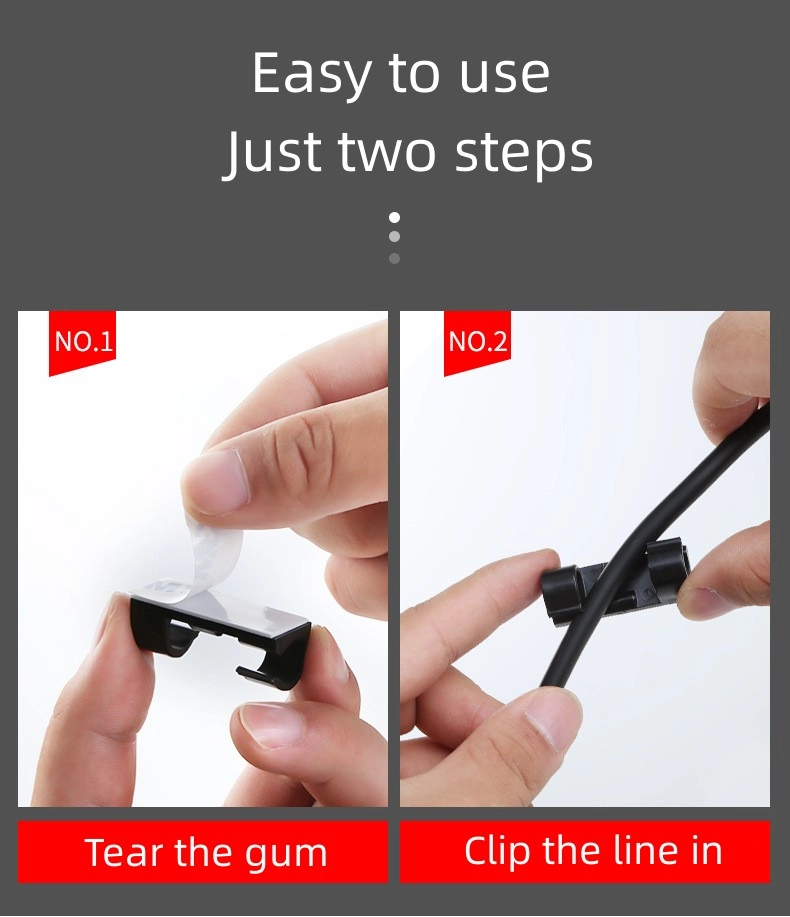 Noch nie war es so einfach, Ihre Kabel zu ordnen. Ziehen Sie einfach das Schutzpapier auf der Rückseite des Halters ab und kleben Sie ihn auf eine Oberfläche Ihrer Wahl. Stecken Sie Ihre Kabel nach Bedarf ein und schaffen Sie mit unseren Haltern ein ästhetisch ansprechendes und ordentliches Kabelmanagementsystem. Kein Kabelgewirr, keine Unordnung!