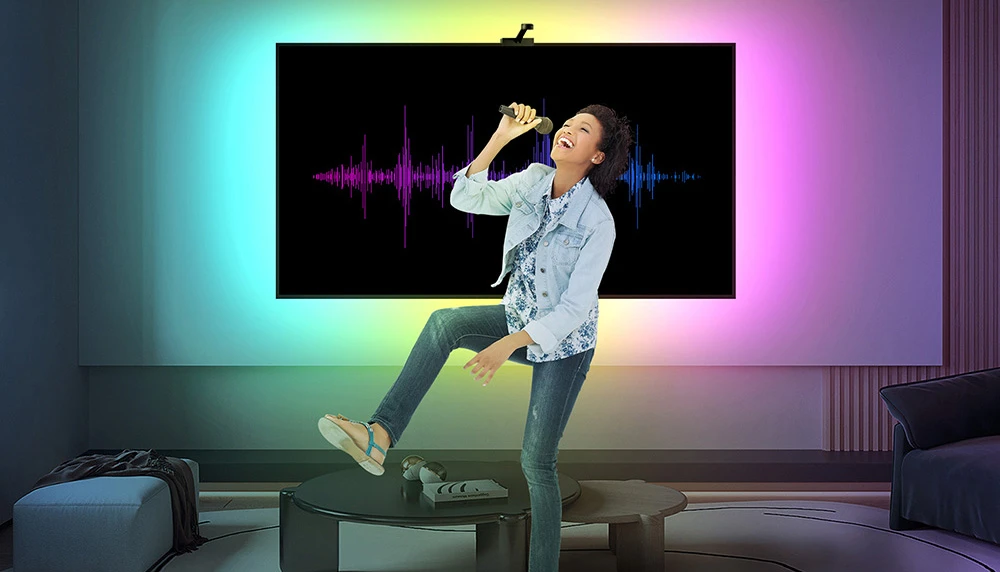 Dank des flexiblen Designs des 3,8 m langen LED-Streifens können Sie ihn einfach an Ihren Fernsehern und Monitoren anbringen. Kleben Sie ihn auf, schließen Sie das Netzteil an und beleuchten Sie den Hintergrund hinter Ihrem Fernseher. Kompatibel mit Geräten von 55-65 Zoll.