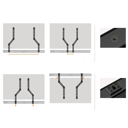Die Halterung ist mit einer Vielzahl von Soundbars kompatibel, unabhängig von deren Größe oder Form. Das bedeutet, dass sie eine vielseitige und praktische Option für alle Liebhaber von großartigem Sound ist. Es ist möglich, eine Soundbar sowohl über als auch unter dem Fernseher zu montieren.